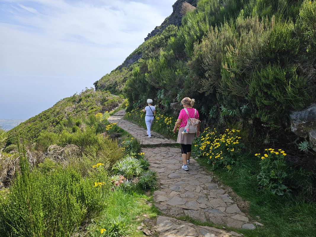 We embark on our adventure at Achada do Teixeira, a breathtaking plateau perched at approximately 1,590 meters above sea level in the municipality of Santana. This stunning locale is framed by majestic volcanic formations that elevate the landscape's allure. As we journey toward Pico Ruivo, you'll be captivated by sweeping vistas of the surrounding mountains and deep valleys. On clear days, you are rewarded with panoramic 360-degree views that stretch across the island, revealing everything from the towering central peaks to the shimmering coastline in the distance.